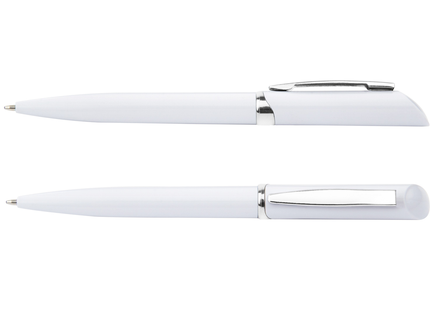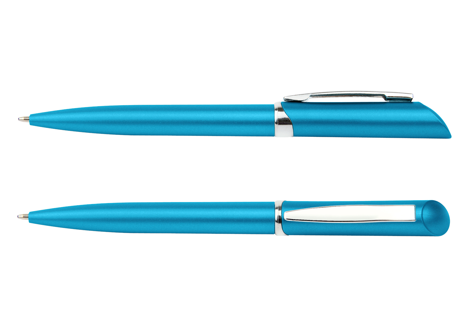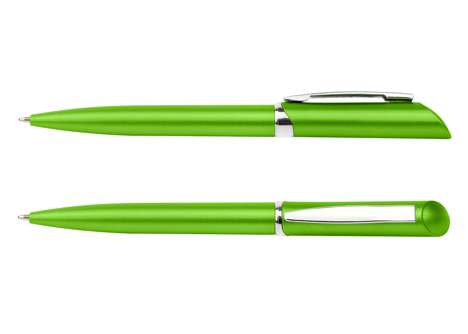 “Bolígrafo plástico con sistema de apertura Twist. Clip plateado.