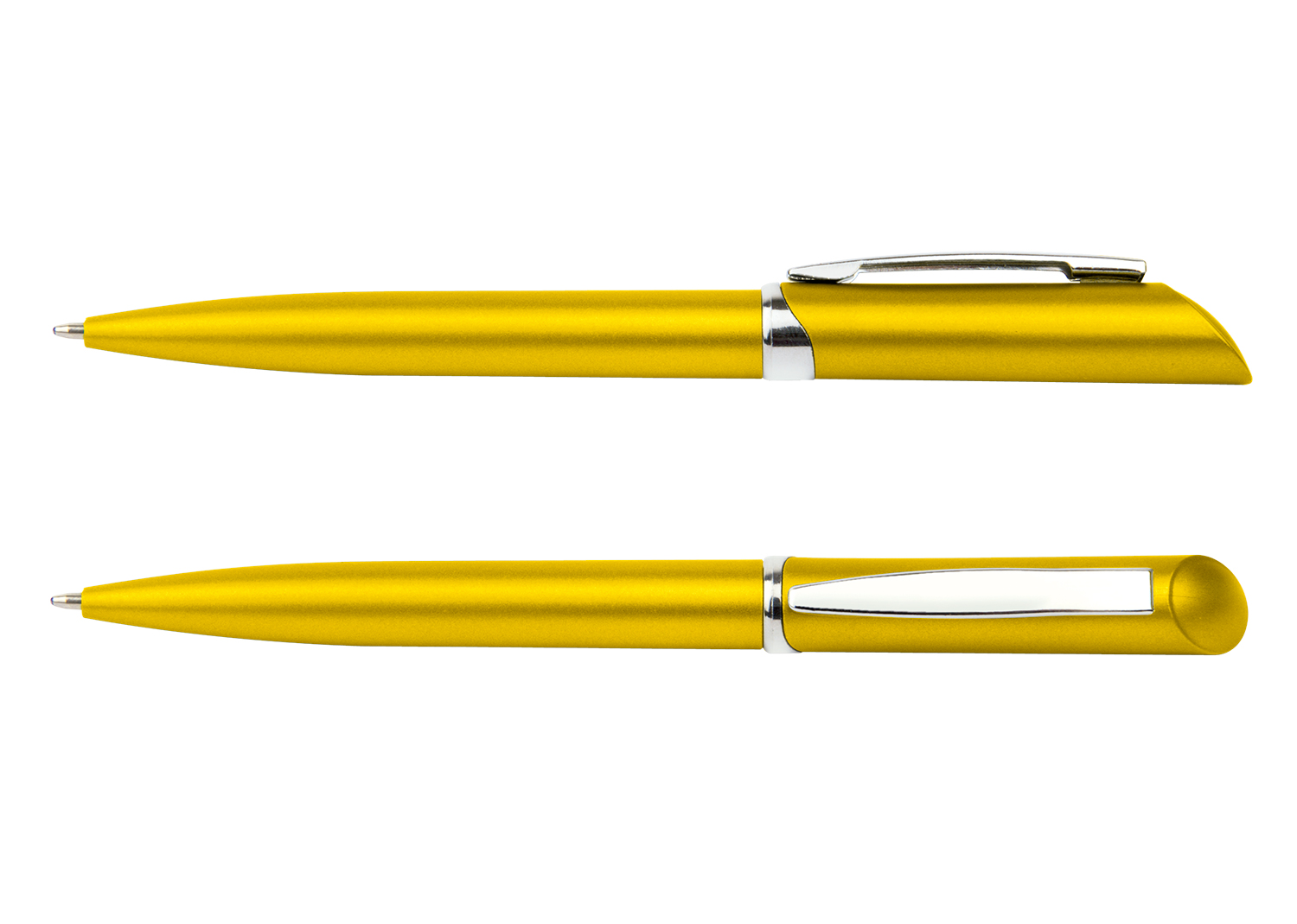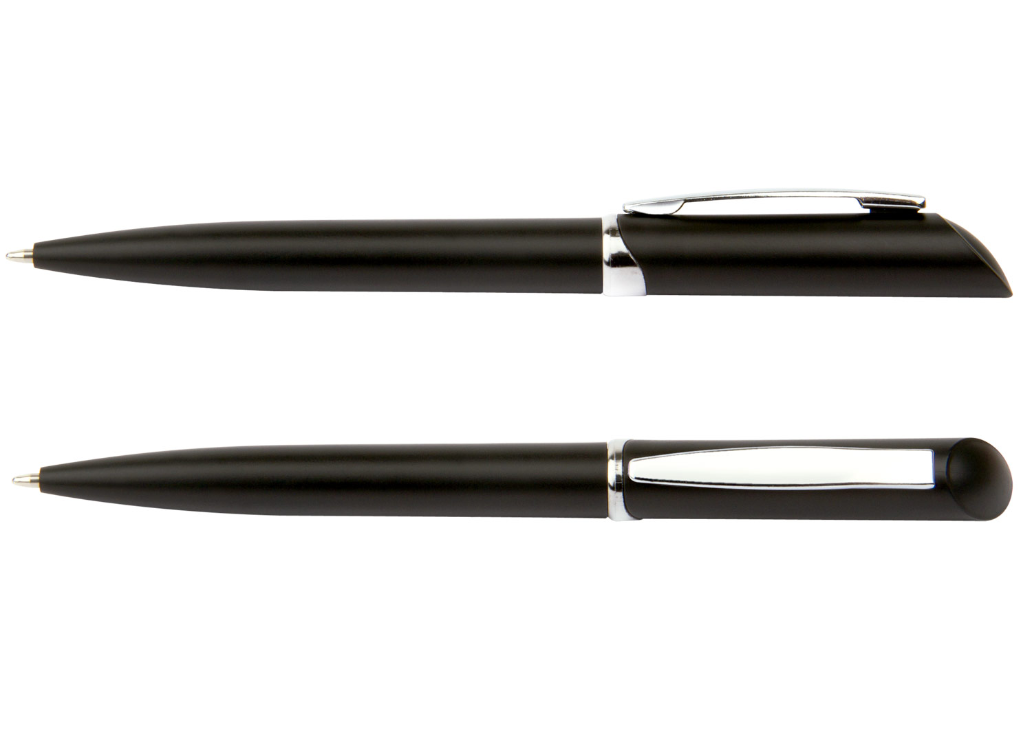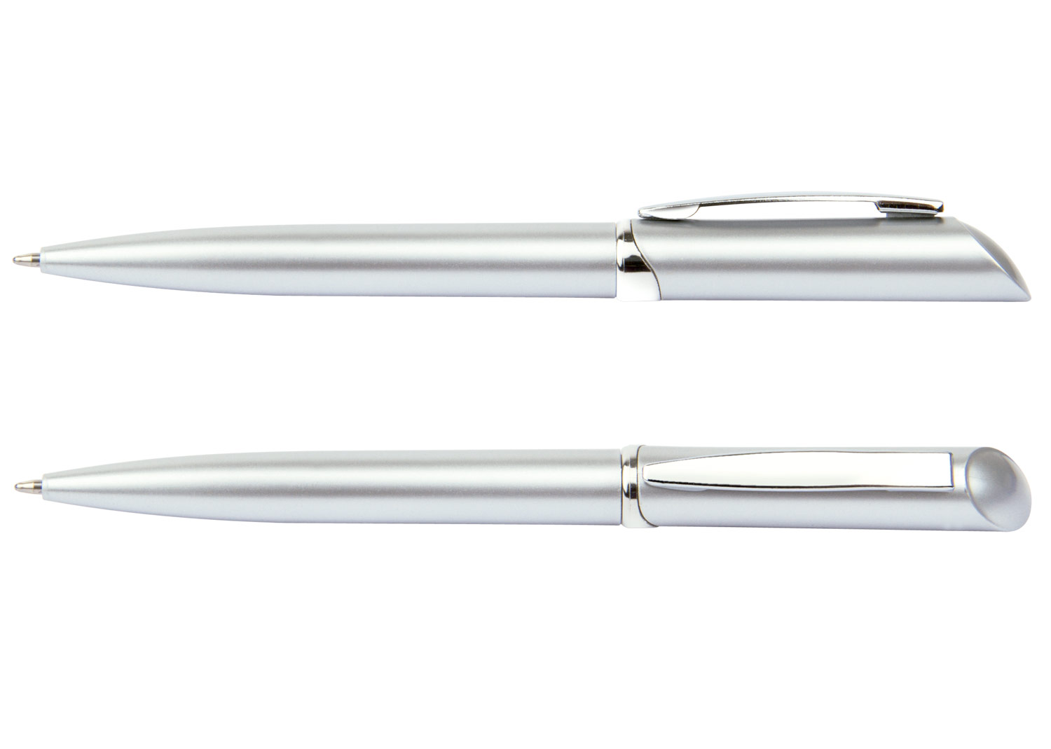 “Bolígrafo plástico con sistema de apertura Twist. Clip plateado.