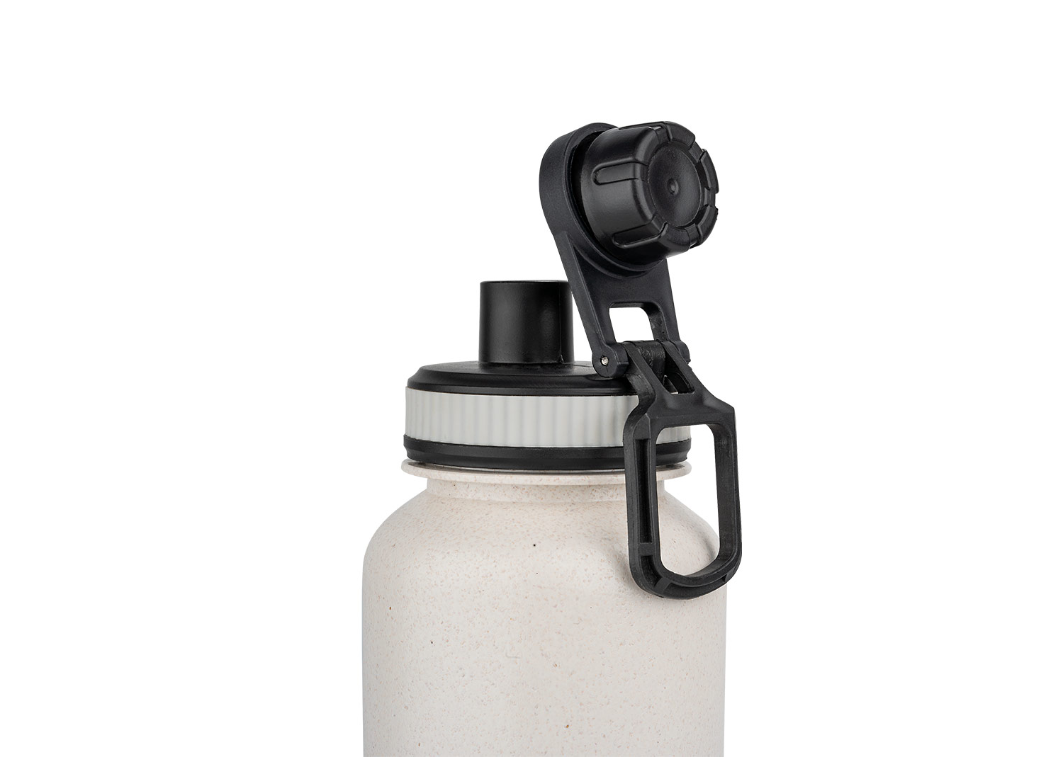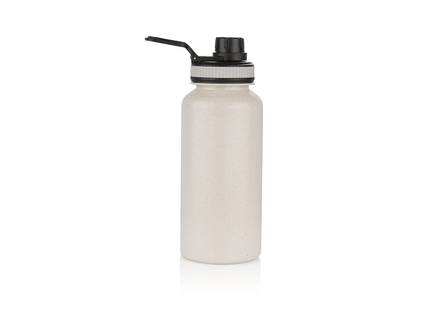 Botella deportiva ecológica de gran tamaño con tapa a presión y boquilla. Tiene una agarradera que permite un transporte fácil. Su capacidad de 1000 ml (33 oz), al estar elaborada con paja de trigo es amigable con el planeta.