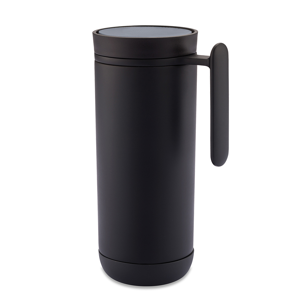 Mug doble pared en acero inoxidable y plástico tapa inteligente de 360º que puede ser abierta y cerrada con un solo toque Libre de BPA y apto para lavar a mano. Diseño registrado. Empaque caja individual